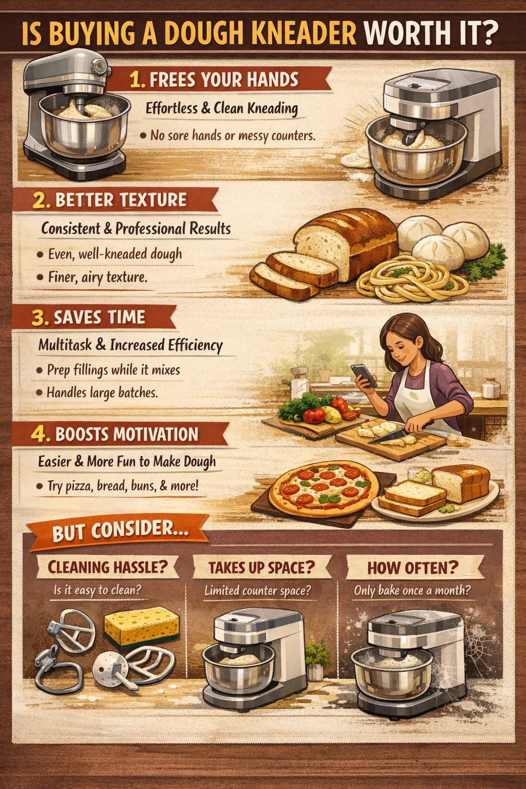 ময়দা কিনছে kneader সত্যিই এটা মূল্য? এটা মূলত নির্ভর করে আপনি কতটা পাস্তা তৈরি করতে ভালোবাসেন এবং আপনি আপনার সময়কে কতটা মূল্য দেন। এটি একটি ডিশওয়াশার বা একটি রোবোটিক ভ্যাকুয়াম ক্লিনারের মতো - কিছু লোক মনে করে এটি একটি জীবন রক্ষাকারী, অন্যরা মনে করে এটি কেবল স্থান নেয়।